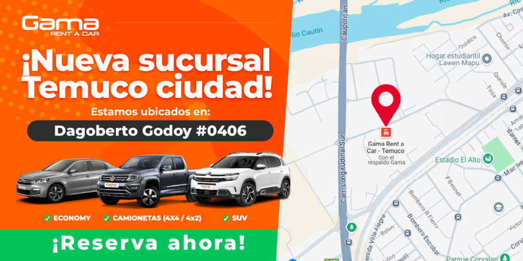 Nueva sucursal en Temuco, ¡una gran noticia para ti!, para que retires y devuelvas el vehículo con mayor comodidad. Visítanos en Dagoberto Godoy 0406, una ubicación estratégica y de fácil acceso. Visita nuestra nueva sucursal en Temuco y explora sus alrededores Con uno de nuestros autos, tienes la libertad de descubrir todo lo que Temuco […]